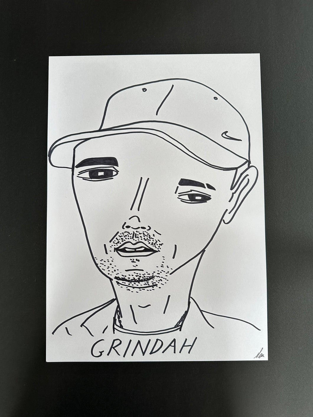 An original, ink on paper badly drawn illustration by Sean Ryan. Signed by Sean.